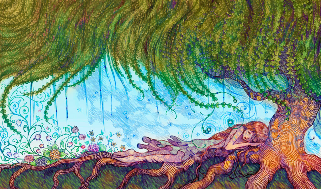 For this edition of SCAN, we wanted our cover to emphasize the feeling of love. The physical connection between the woman on the ground and the tree represents the attitude everyone needs to have towards nature in order to preserve our world for future generations. The creative team selected flowers containing personal meanings to each of us from different aspects of our lives.