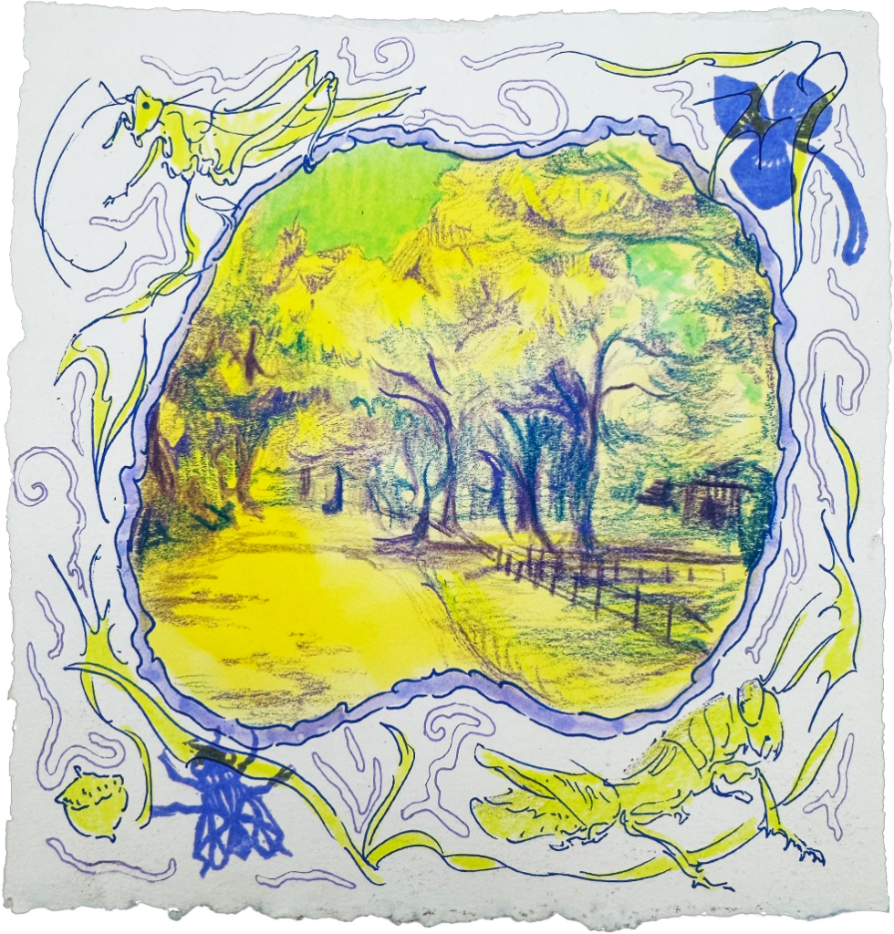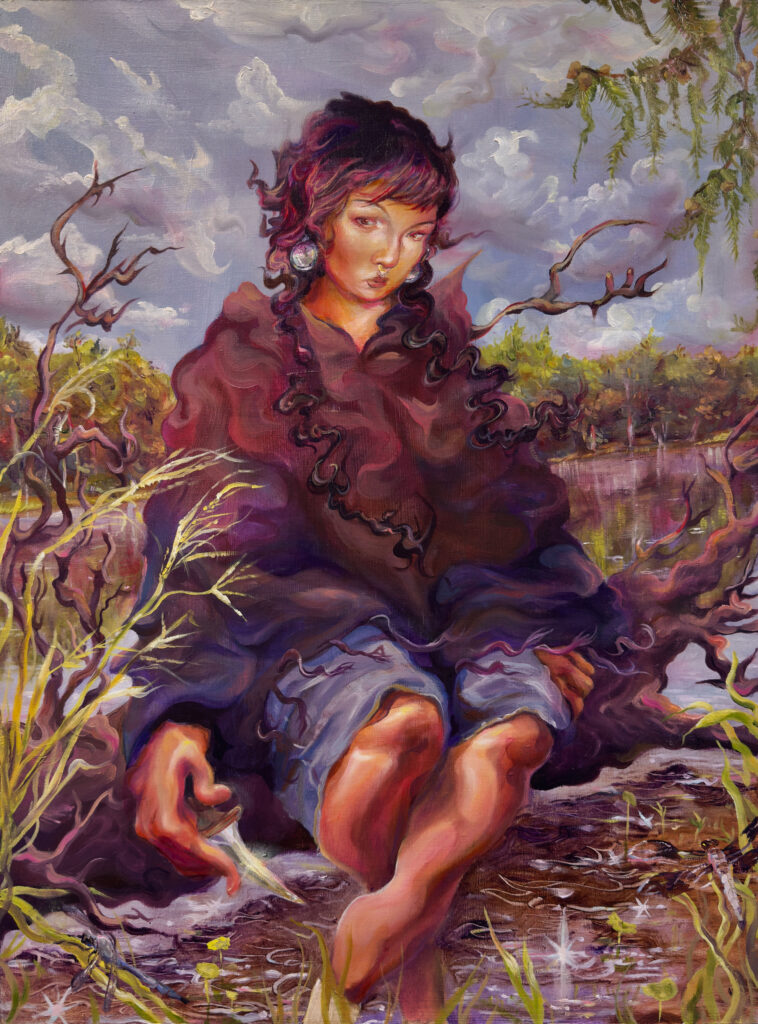 I am looking to find my proximity to all things, exploring what Americana means to me. I incorporate my Texas upbringing, Indigenous heritage, and my time living in the Deep South. I connect with familial ties and the land by rendering and depicting my own experiences in bucolic scenes.